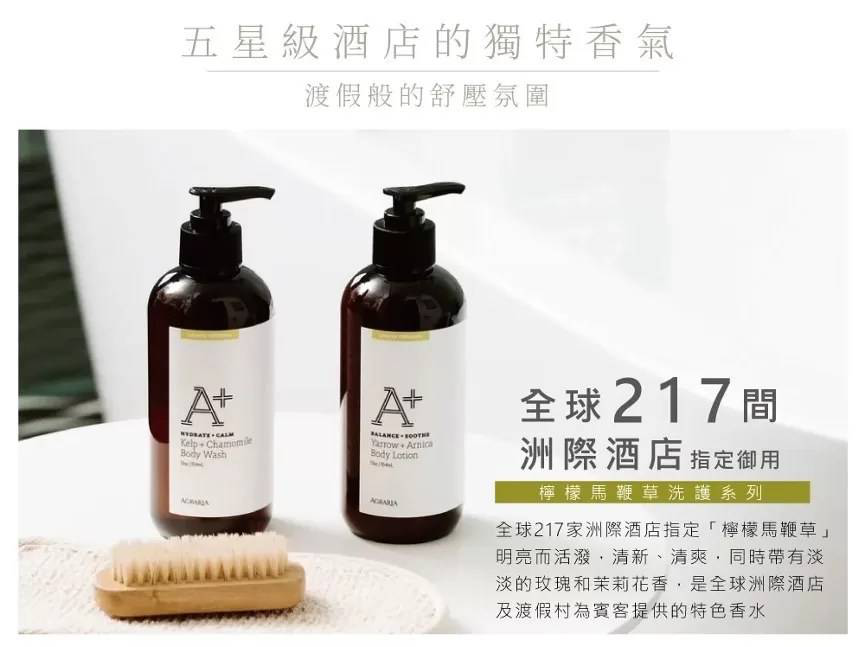 一進門,撲鼻而來令人放鬆的香氣,是以檸檬馬鞭草經典香調聞名的美國香氛品牌AGRARIA,AGRARIA是全球217家洲際酒店指定的沐浴用品,主打天然複方精油淬鍊,不含酒精成分,揮發慢且效果持久,更通過IFRA、FDA、SGS三重認證,專為居家空間打造舒適的室內香氛。